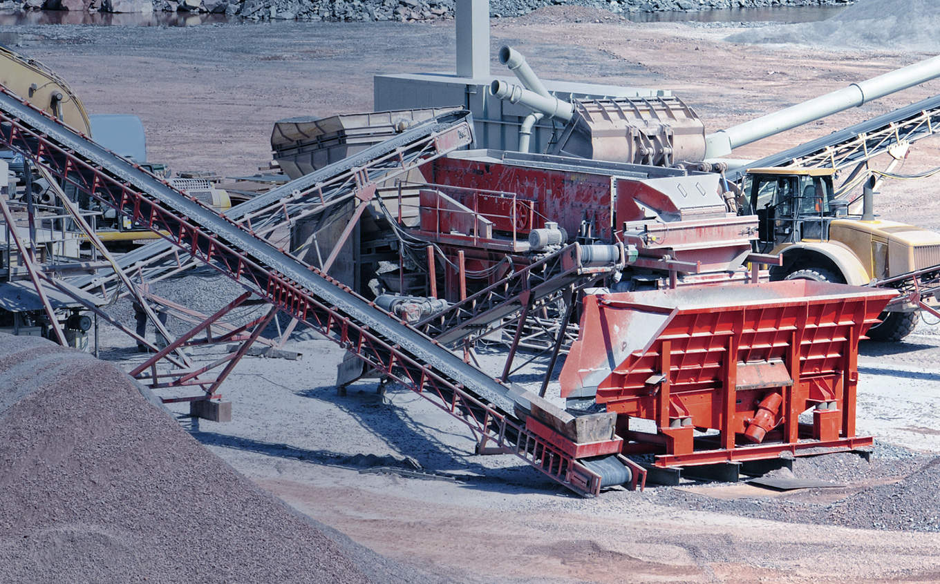 沖擊式破碎機是石料由機器上部直接落入高速旋轉的葉輪轉子,在高速離心力的作用下,與另一部分以傘型方式分流在轉盤四周的靶石產生高速度的撞擊與高密度的粉碎,石料在互相打擊后,又會在轉盤和機殼之間形成渦流運動而造成多次的互相打擊、磨擦、粉碎,從下部直通排出。形成閉路多次循環,由篩分設備控制達到所要求的粒度。
